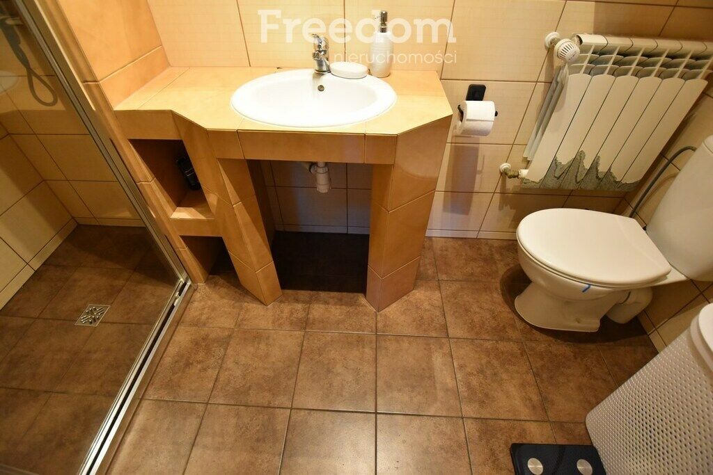 - wykafelkowaną łazienkę z prysznicem, toaletą, umywalką o pow.
